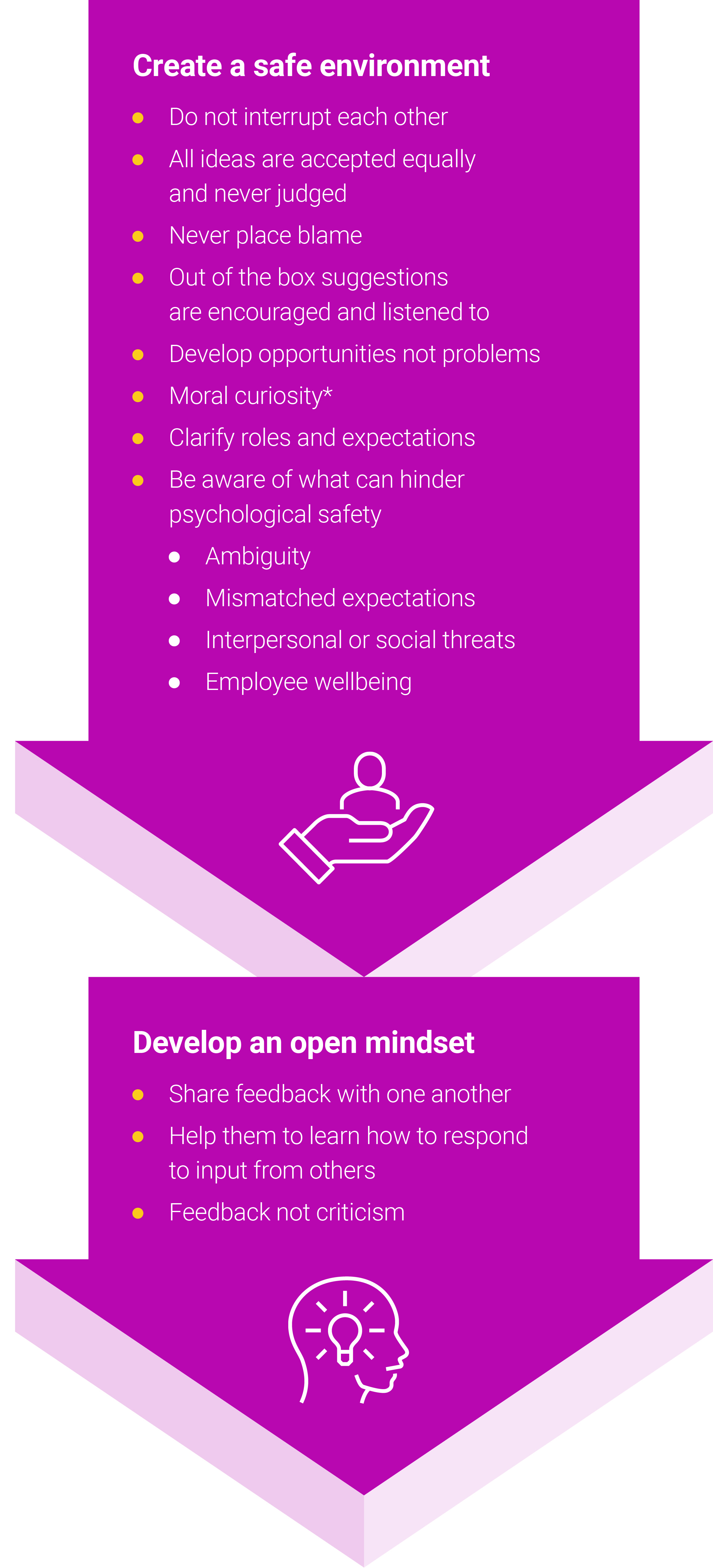 Fostering Psychological Safety (FPS) is a leadership approach that provides a collective vision for learning that encourages people to speak-up, ask questions and share ideas. No-one feels that they will be humiliated or penalised if they speak-up with ideas, questions, concerns, ask for help or admit to a mist.